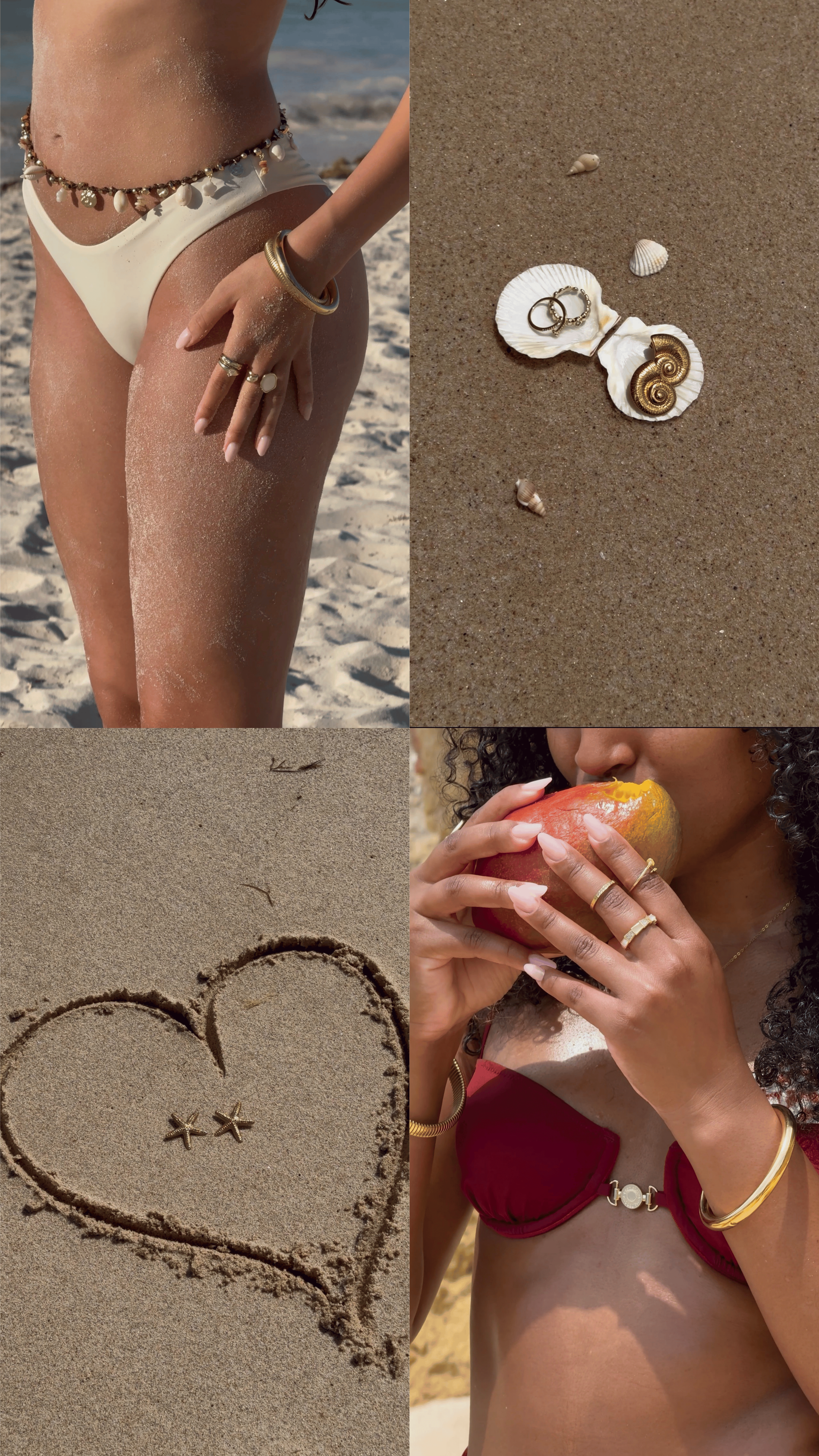 The founder envisioned her jewelry on real skin, by real water — soft, sun-drenched, never staged. We built a coastal shoot around organic lifestyle moments where the pieces felt worn, not displayed