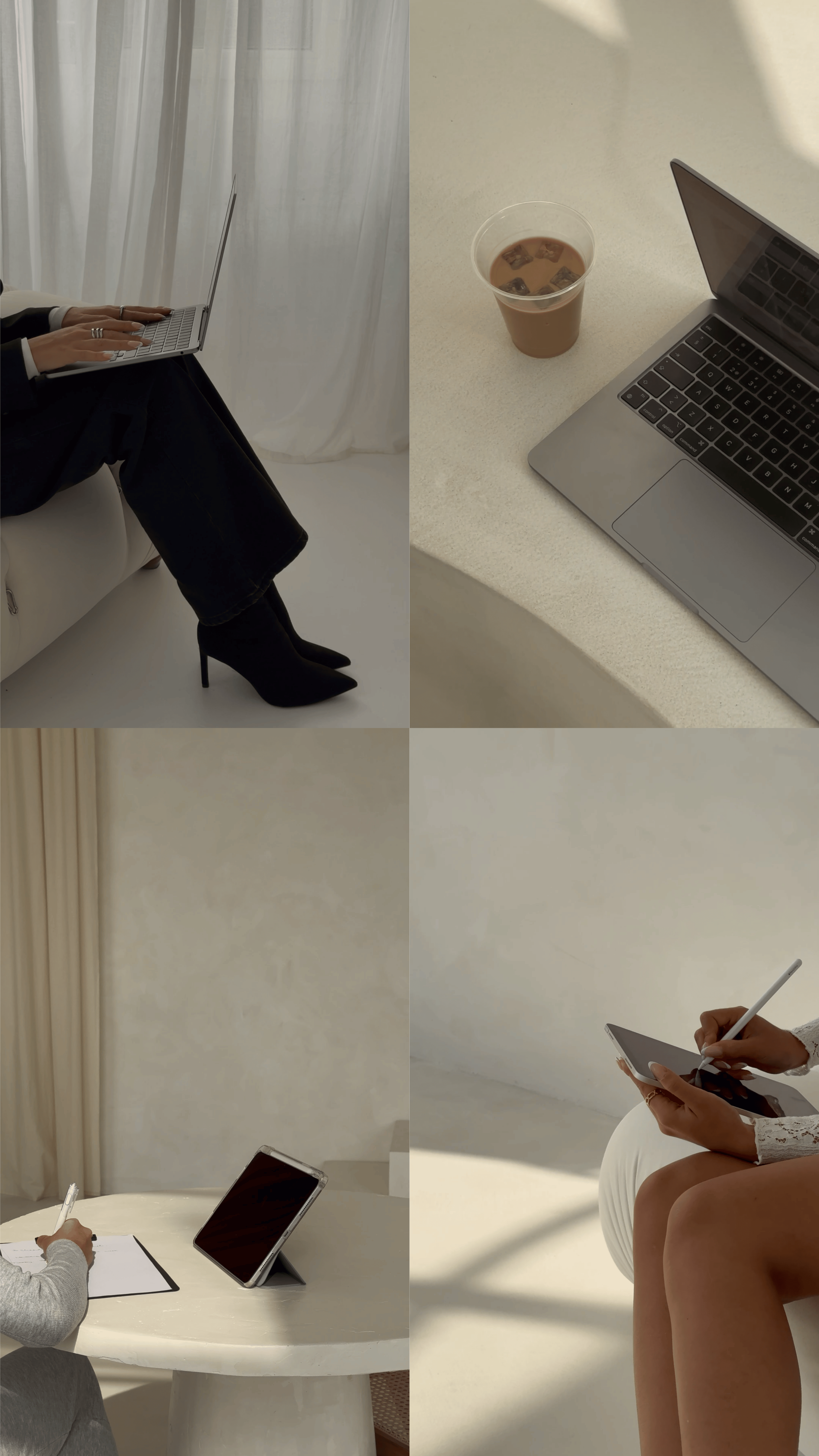 A coach building an online course wanted content that didn't feel like LinkedIn productivity. No rushed clips, no laptop hero shots. She wanted slow, considered moments. We built a soft studio shoot around quiet routines: work, coffee, light through curtains, never staged.