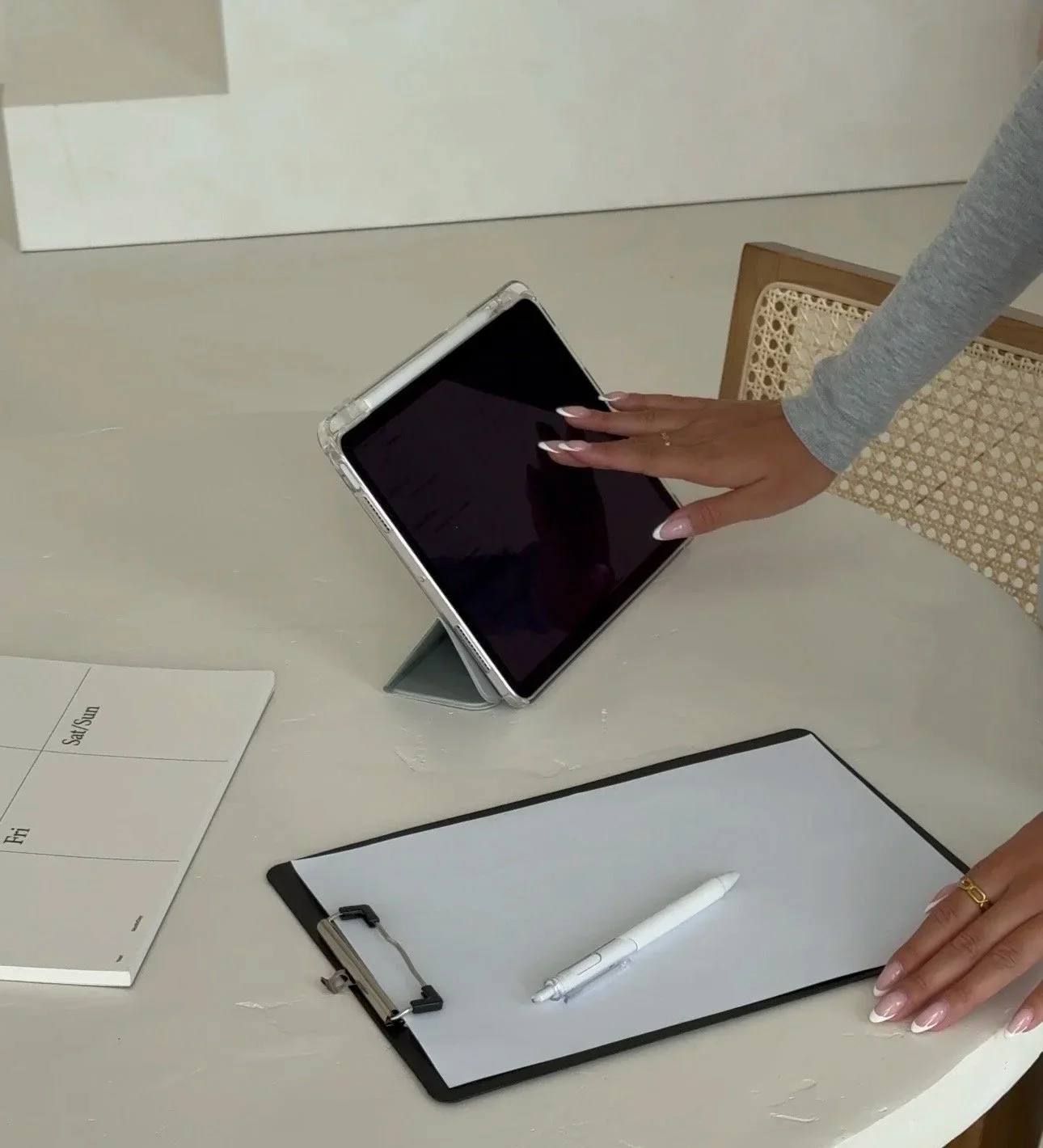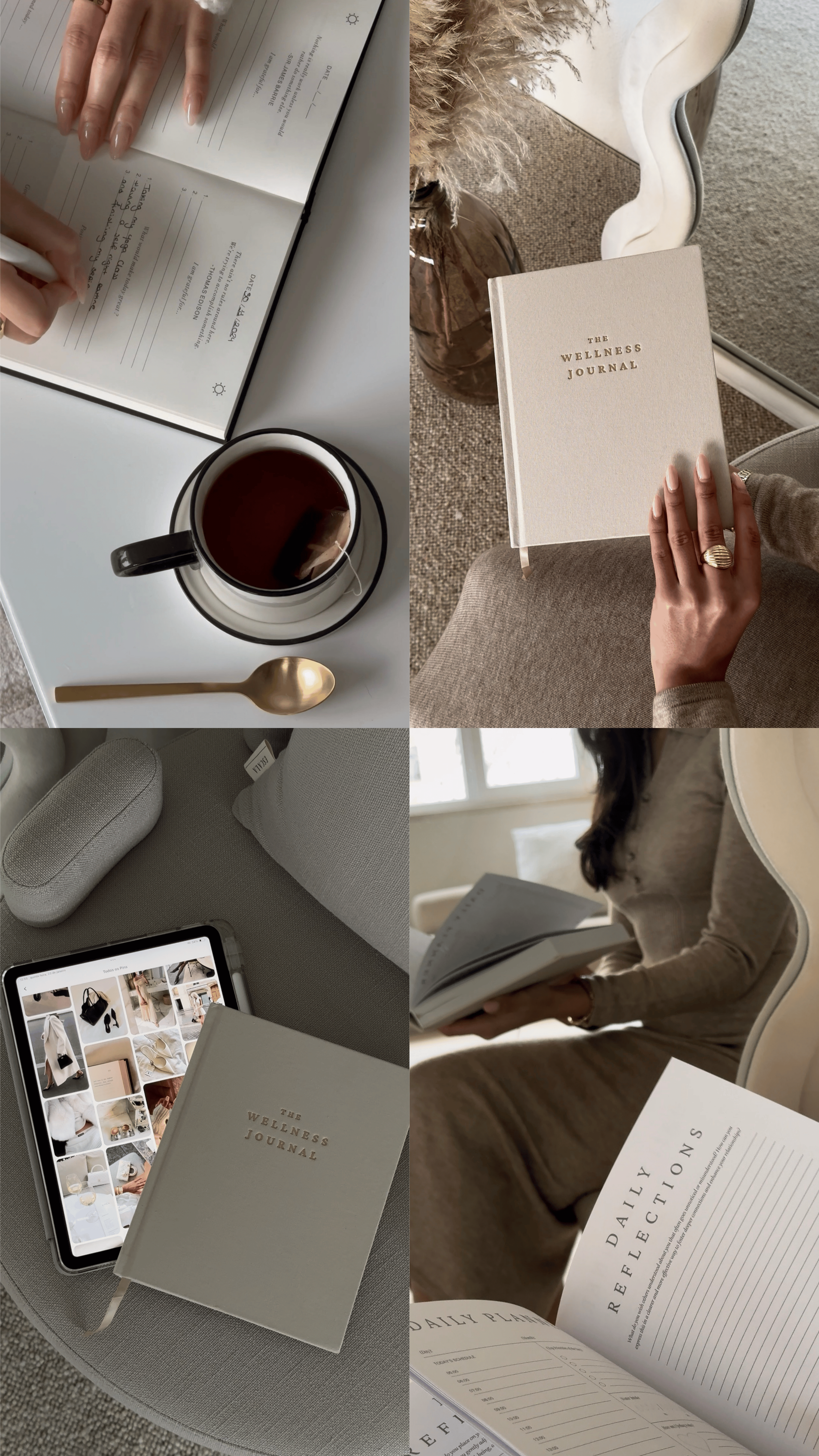 A new wellness brand approaching launch. The founder wanted her journal seen as part of someone's day — not isolated on a backdrop. The cream and warm brown tones of the brand had to live in every shot, never broken. We delivered a lifestyle shoot built around morning rituals where the journal felt worn into routine, already part of the life it was made for.